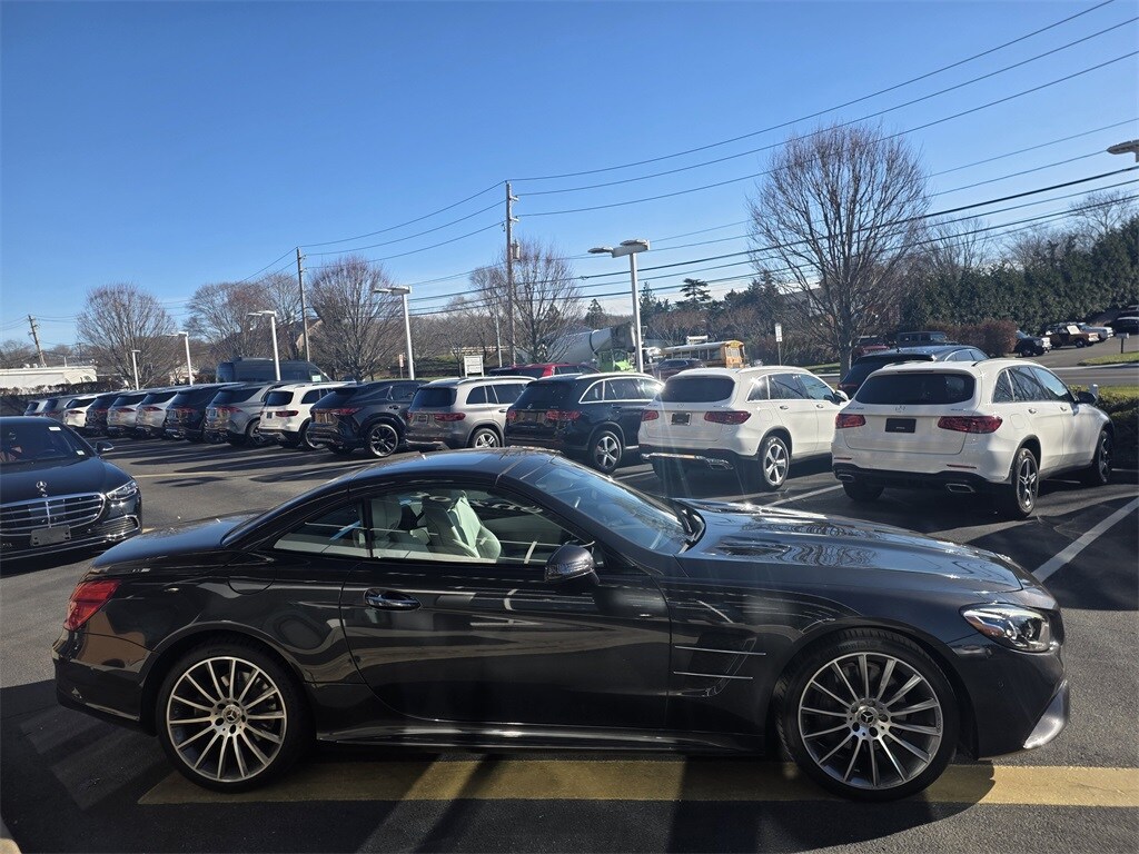 2020 Mercedes-Benz SL 550 Graphite Gray Metallic Crystal Gray/Black w/Leather Upholstery, 19" AMG® 5-Spoke Wheels, 4-Wheel Disc Brakes, ABS brakes, Active Blind Spot Assist, Active Brake Assist w/Cross-Traffic Function, Active Distance Assist DISTRONIC®, Active Lane Keeping Assist, Active Multicontour Seats w/Massage, Alloy wheels, Android Auto®, Anti-whiplash front head restraints, Apple CarPlay®, Apple CarPlay®/Android Auto®, Auto tilt-away steering wheel, Auto-dimming door mirrors, Auto-dimming Rear-View mirror, BAS PLUS, Burl Walnut Wood Trim, Child-Seat-Sensing Airbag, Convertible HardTop, Convertible roof lining, Convertible roof wind blocker, Cross-Traffic Assist, Driver Assistance Package, Dual front impact airbags, Dual front side impact airbags, Emergency communication system, Exterior Parking Camera Rear, Front anti-roll bar, harman/kardon® LOGIC7 Sound System, Heated & Active Ventilated Front Seats, Heated front seats, High Performance Tires, Integrated roll-over protection, Knee airbag, Leather Upholstery, Low tire pressure warning, MAGIC SKY CONTROL®, Memory seat, Navigation Map Updates For 3 Years, Navigation System, Occupant sensing airbag, Overhead airbag, Power adjustable front head restraints, Power driver seat, Power passenger seat, PRE-SAFE® Brake, PRE-SAFE® PLUS, Radio: COMAND® NTG 5.1 Infotainment System, Rear anti-roll bar, SiriusXM Satellite Radio, Smartphone Integration, Speed Limit Assist, Ventilated front seats.