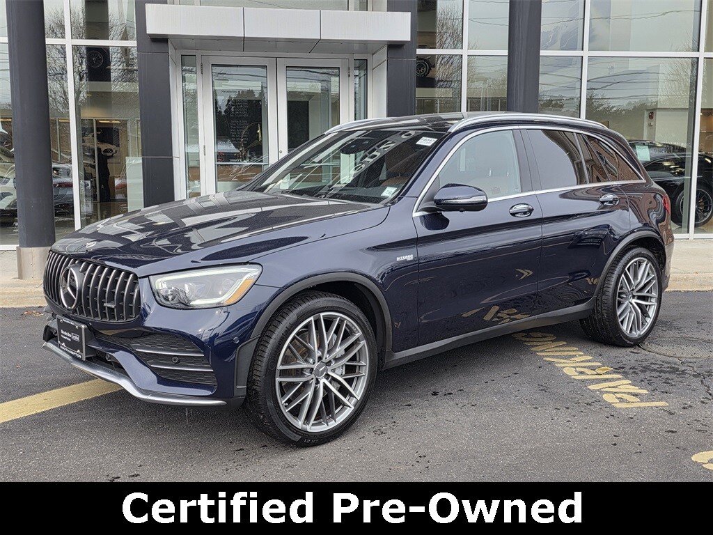 2022 Mercedes-Benz GLC 43 AMG® 4MATIC® Lunar Blue Metallic 4-Wheel Disc Brakes, ABS brakes, Active Blind Spot Assist, Active Emergency Stop Assist, Active Lane Change Assist, Active Lane Keeping Assist, Active Speed Limit Assist, Adaptive suspension, Alloy wheels, Apple CarPlay®, Apple CarPlay®/Android Auto®, Auto tilt-away steering wheel, Auto-dimming door mirrors, Auto-dimming Rear-View mirror, BAS PLUS w/Cross-Traffic Assist, Child-Seat-Sensing Airbag, DISTRONIC PLUS® w/Steering Assist & Stop & Go Pilot, Driver Assistance Package, Driver Assistance Package Plus, Dual front impact airbags, Dual front side impact airbags, Emergency communication system: eCall Emergency System, Exterior Parking Camera Rear, Front anti-roll bar, Heated door mirrors, Heated front seats, Knee airbag, Leather Upholstery, Live Traffic, Low tire pressure warning, Memory seat, Mercedes-Benz Navigation, Multimedia Package Lite, Navigation System, Occupant sensing airbag, Overhead airbag, Panorama Roof, Power adjustable front head restraints, Power Liftgate, Power passenger seat, PRE-SAFE® Brake w/Pedestrian Recognition, PRE-SAFE® PLUS, Rear anti-roll bar, Route-Based Speed Adaptation, Smartphone Integration, Speed Limit Assist, Wheels: 21" AMG® Split 10-Spoke.